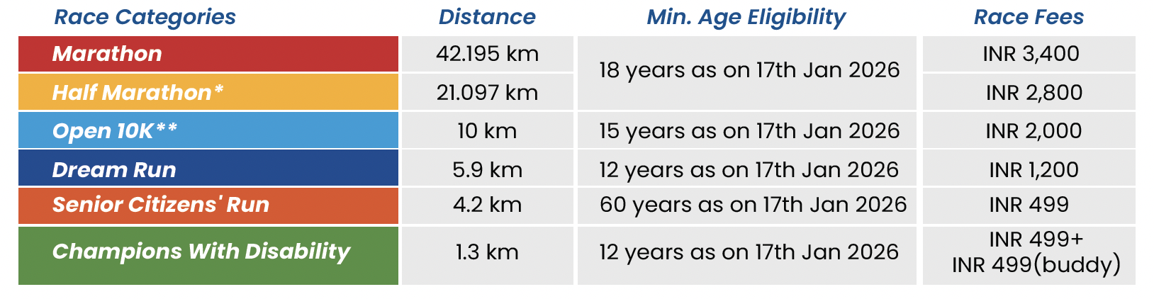 Companies or any group of individuals can register teams to participate in the TMM 2026 by supporting an NGO through a minimum specified donation. Corporate teams enjoy a differentiated experience on race day. Apart from contributing to a worthy cause, corporate team participation also becomes a great employee engagement opportunity for companies. It helps build team spirit, sensitises employees and is a fun way to volunteer time. Companies that participate also elevate their brand by associating with philanthropy at this highly visible event